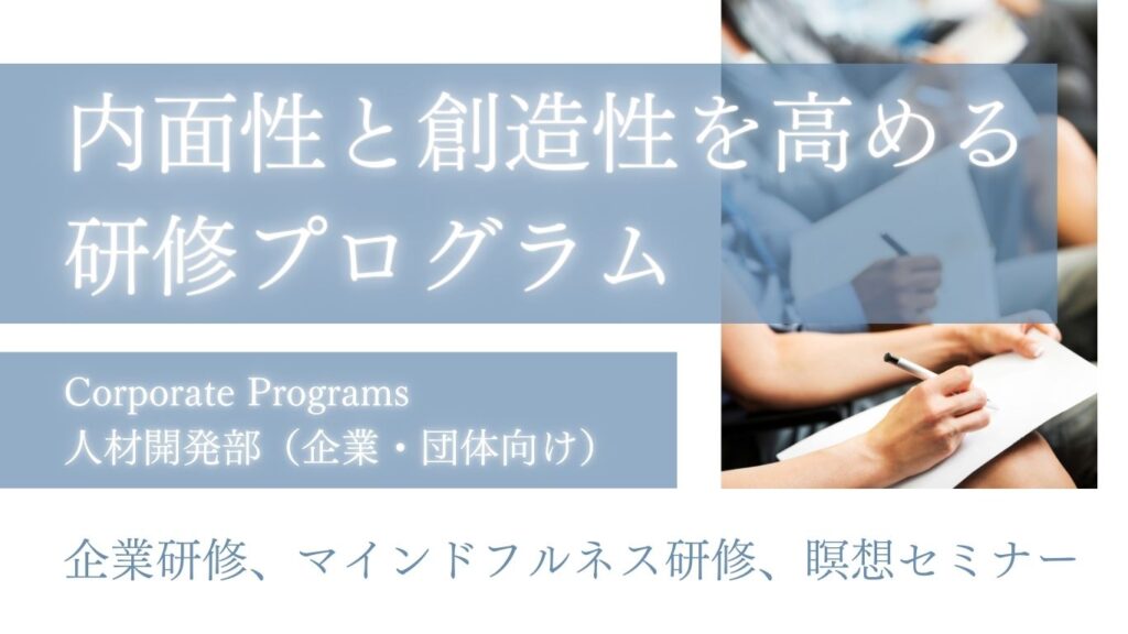企業研修、出張セミナー、内省力強化プログラム、マインドフルネス研修、瞑想セミナー